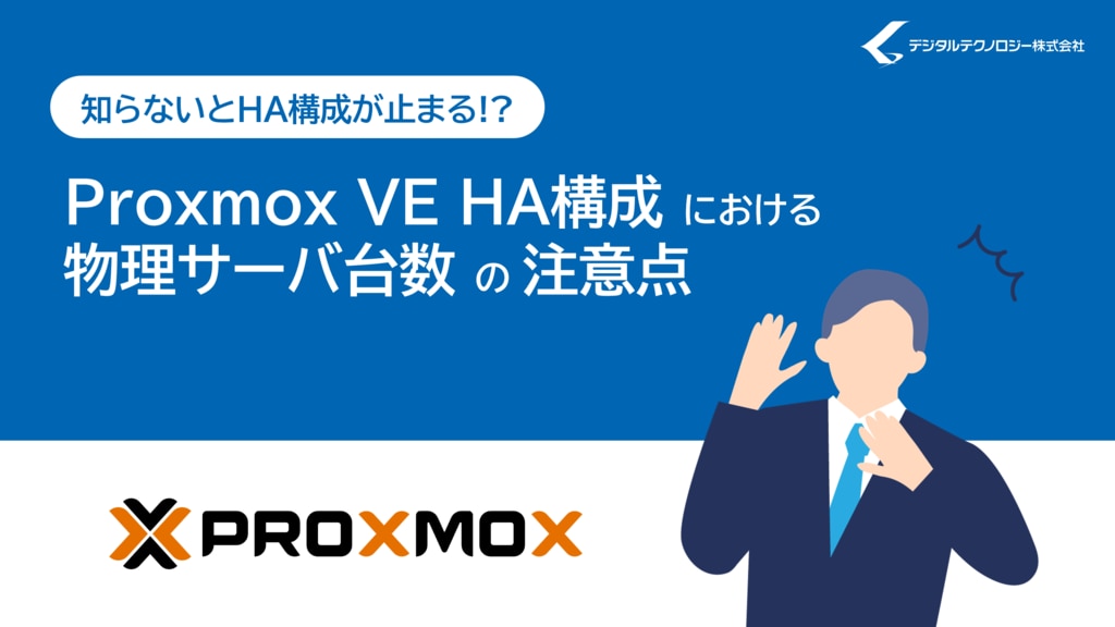 Proxmox VEのHA構成では、なぜ物理サーバが3台以上必要なのか。 本記事ではQuorumの仕組みを軸に、2台構成でHAが成立しない理由と、最小構成を検証結果を交えて解説します。