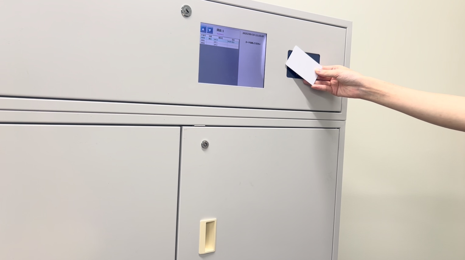 認証が完了すると、キャビネットの扉が解錠され、物を取り出すことができるようになります。