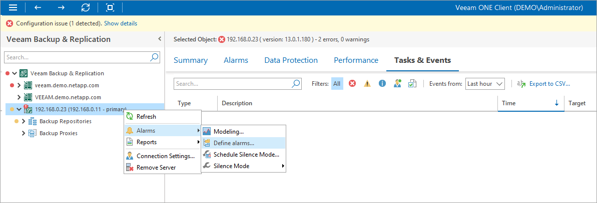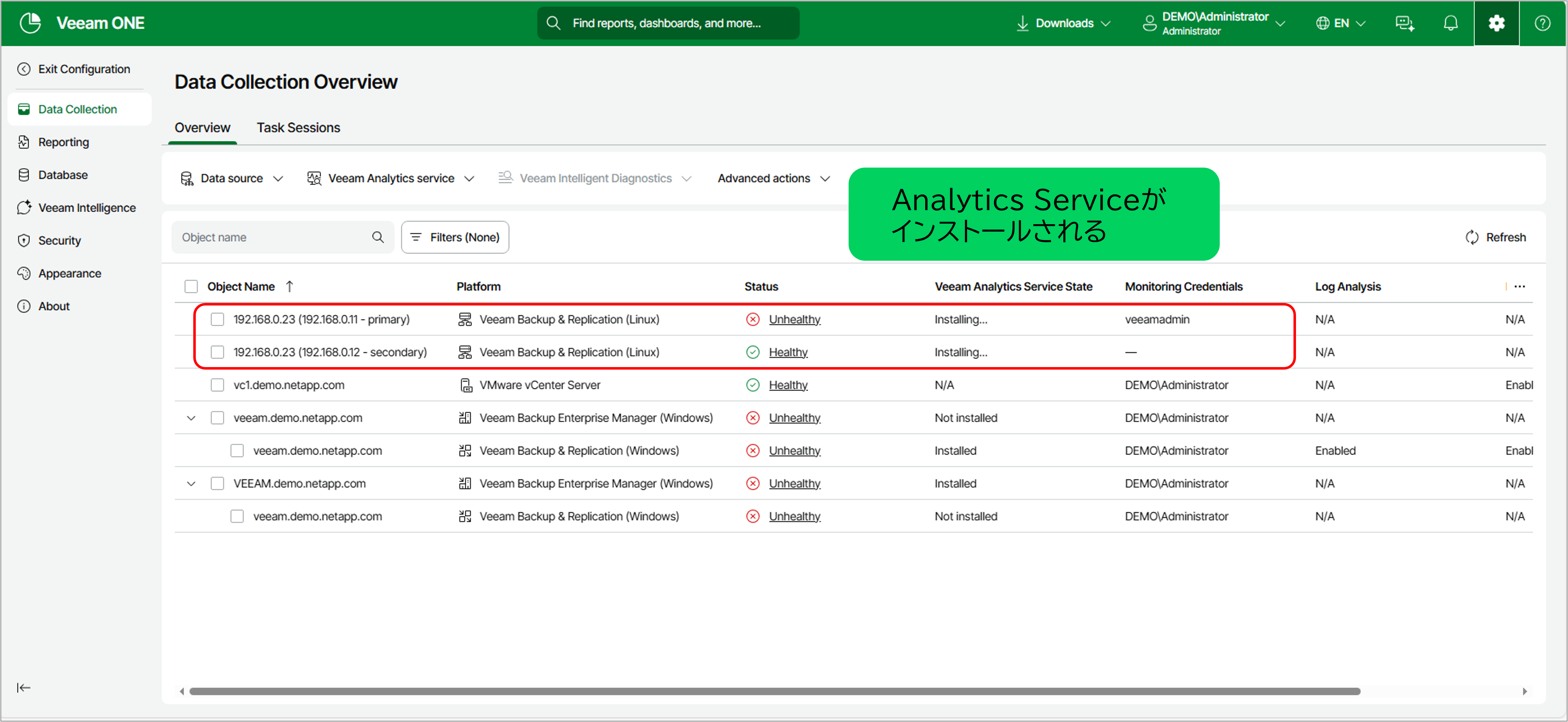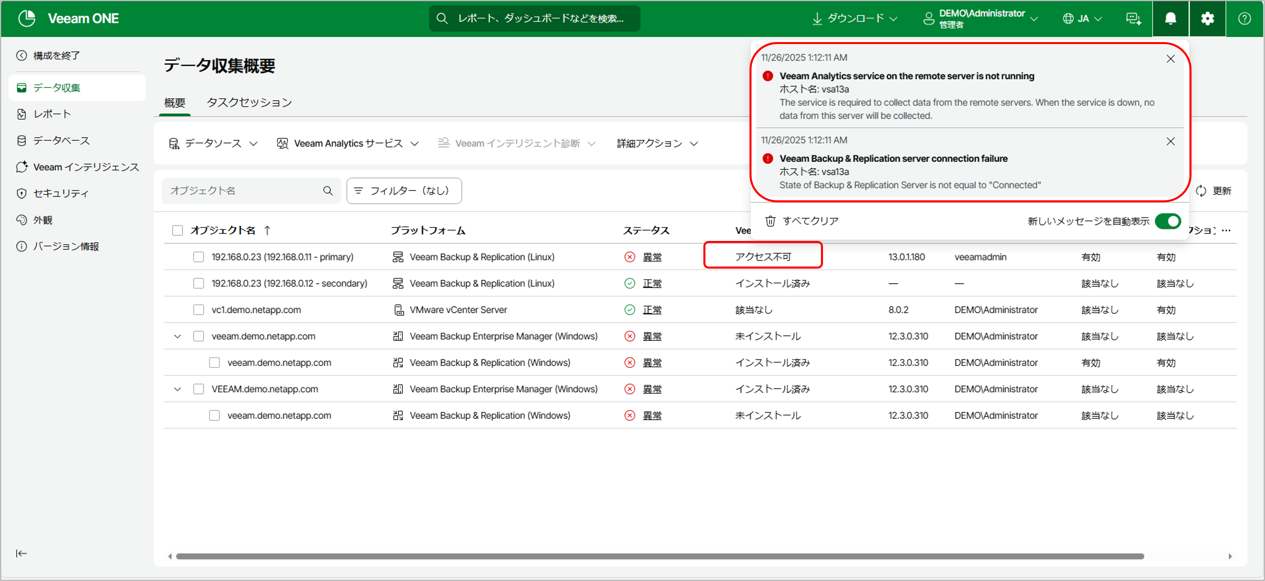 - Veeam ONE : vsa13a(旧プライマリ)がプライマリと認識