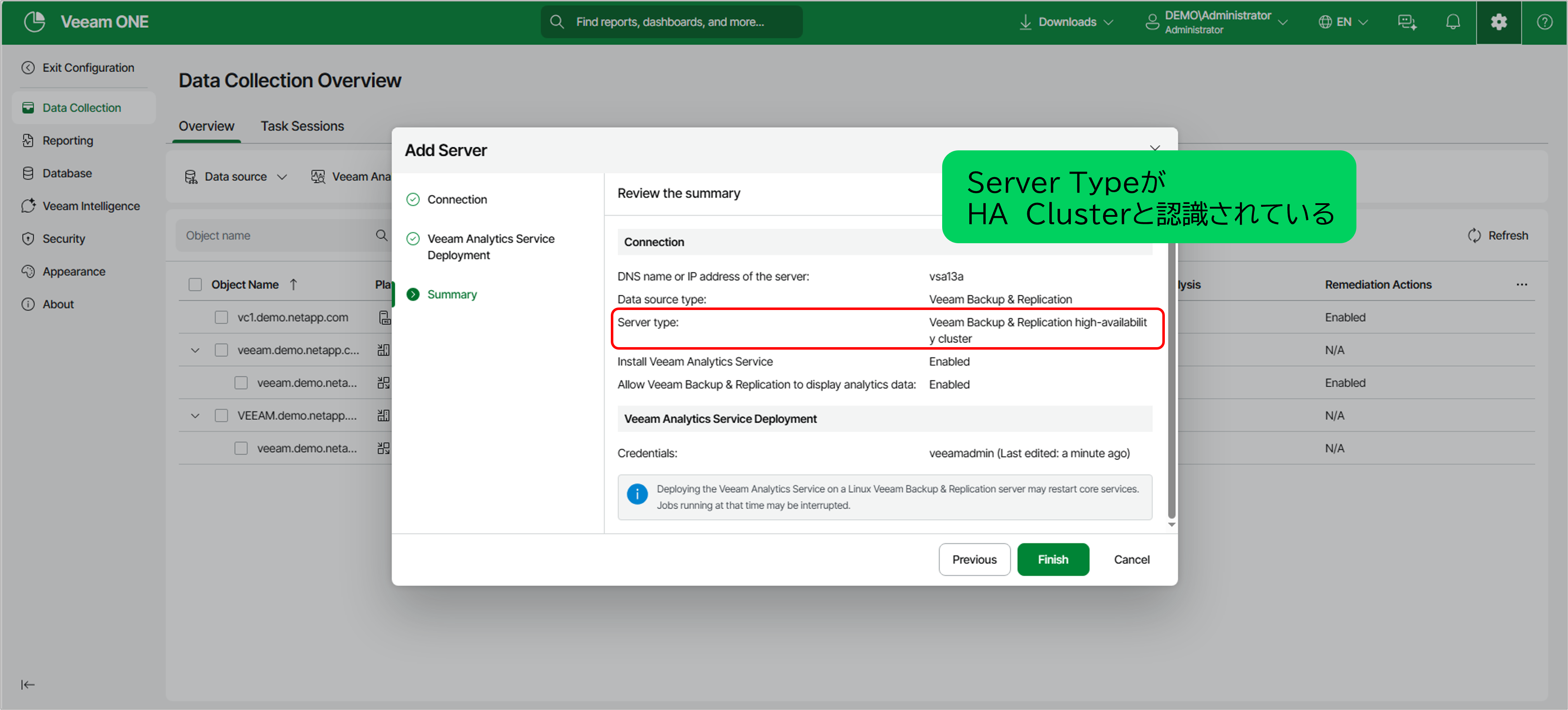 Veeam ONEにサーバを追加すると、自動的に「High-availability cluster」として認識されます 。